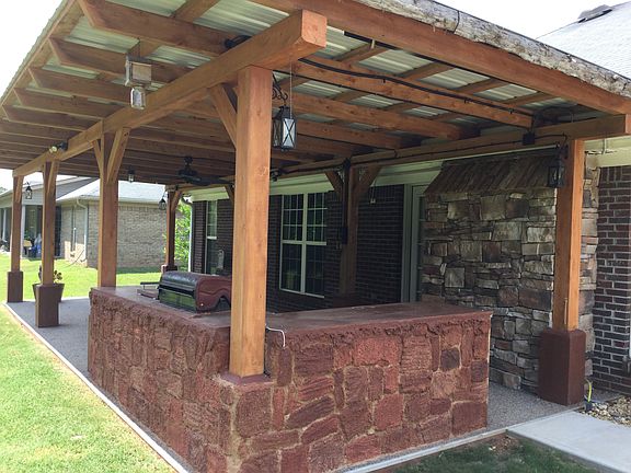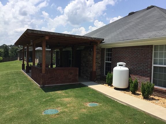 Full brick 3 BR 2 BA home is located in a well-established neighborhood.This home offers an isolated spacious master suite w/sitting area, generous sized greatroom, and 2 dining areas, making entertaining a breeze!. There's also an office that overlooks the awesome backyard. In the backyard, is a covered patio w/ a well-equipped grilling/cooking station as well as the outside detached storage bulding w/electricity and the in-ground storm shelter. Tons of storage in the floored attic space above the garage. NEW HOT WATER HEATER 7/2019! Termite bond. One Year Home Warranty ($500) and $3000 seller concessions w/ accepted offer. Security camera system to convey with home. Don't miss it!
