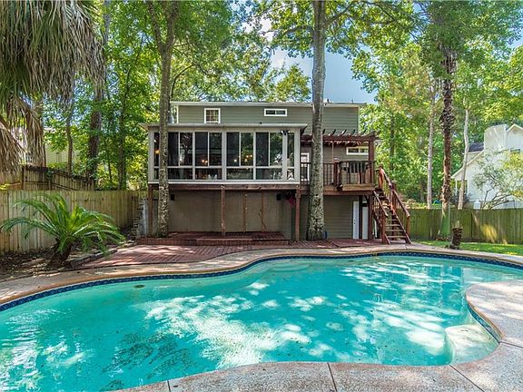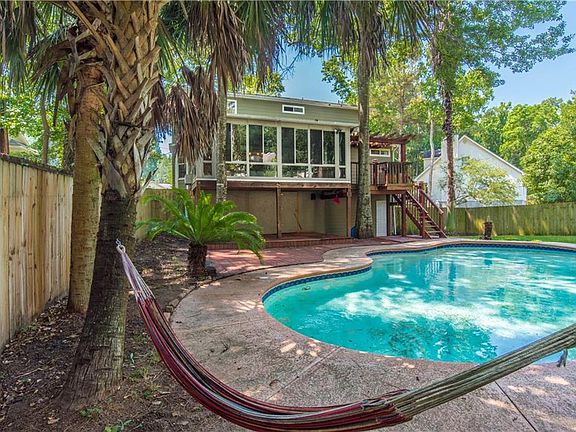 VRM - SELLERS WILL ENTERTAIN OFFERS BETWEEN $189,000 - $215,000. With a little TLC, this precious Creole-style home in Daphne's Lake Forest community could be your personal oasis! 2100 sq. ft of heated/cooled living space offers easy living. If extra space is needed, there is an additional 458 sq. ft. heated/cooled basement with an unfinished bathroom that is currently being used as a garage. The living room features soaring ceilings, parquet wood flooring throughout, a wood-burning fireplace, and 3 spacious bedrooms; 2 up which share a bathroom, and a large master suite downstairs with its own private bathroom. The updated kitchen has granite countertops and stainless appliances. Also, there's a brand new stainless refrigerator that will remain. A sunny breakfast area and large glassed Florida room overlooks a backyard oasis, a gunite pool, a concrete patio entertainment area, and plenty of palm trees. From the kitchen, step through the french doors of the Florida room onto a wonderful deck with grilling space and easy access to the pool. Easy in and out of Lake Forest; very close to the Windsor entrance, but still privately tucked away on a quiet cul de sac lot!