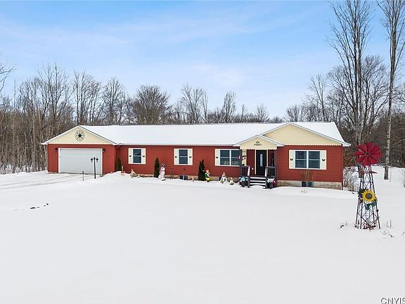 Conveniently designed; this custom built ranch features almost 2000 sq ft of comfort and convenience! The meticulous entry way provides useful laundry space, cabinetry, as well as a place to rest your outside attire. The kitchen is the chef's kiss; showcasing custom cabinetry, a walk in pantry and an Island work station! The open concept and vaulted ceilings highlight the space and natural light of this amazing home; as well as the sliding glass doors that lead to the large composite deck! The Natural wood and wainscoting throughout perfectly accentuates the country vibe!This property is set on almost 4 acres highlighting a beautiful front yard and a private wooded oasis in the back. When spring arrives so will the dozens of perennial plants and bushes carefully placed around the entire property! There is so much more! This home is a must see! 2026-02-05