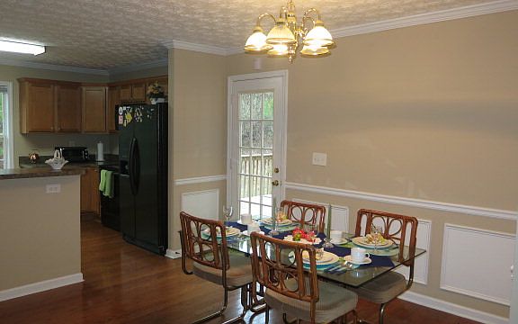 Two-story with basement, this home features an open layout that includes a living room with fireplace, dining area, and kitchen with lovely neutral colors throughout. In addition to the front porch and balcony, this home has a back deck, accessible through the kitchen, which will provide an excellent area for a fun cookout! A half-bath with pedestal sink is located on the main level. Upstairs you will find the owner's suite which features a lovely trey ceiling, large walk-in closet, and master bath with separate shower, tub, double sink vanity, and vaulted ceiling. Two other bedrooms and a bath are also on this level. The house provides ample closet space throughout for storing clothes and linens. The basement is also a great place for extra storage and its walk-out light and airy feel invites further expansion of living space. There is also a large, readily accessible attic above the garage for even more storage. This relatively small neighborhood, Escoe Estates, is quiet and close to downtown Athens, shopping, medical offices, and UGA.