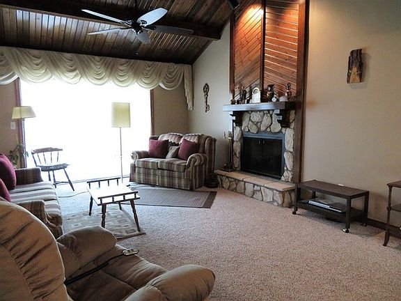 This 2 bedroom 2 bath condo is ready to move into. The open floor plan features a cathedral ceiling, gas log fireplace and patio doors that go out to the private deck. The kitchen is spacious with plenty of work space, lots of cabinets and an eating bar. The master bedroom has 2 closets, a private bath and an extra space for whatever you want to make it. There is plenty of storage area in the home and in the roomy 2 car garage. So if your looking for an affordable condo with lots of amenities, this could be the one!!