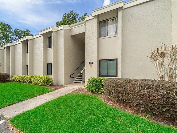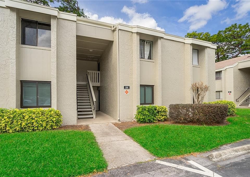 Move-in ready! This well-maintained ground floor condo has been nicely updated with laminate flooring, new kitchen cabinets, counters, ceramic tile flooring, super quiet Bosch dishwasher, and a smooth top range/convection oven. New double-paned windows throughout including the sliding glass door with mini blinds in the glass! This unit has a laundry closet inside with a full-size front-loading washer and dryer. Hunter ceiling fans, new water heater in 2019 and new front door too. Bathroom nicely renovated with new shower tile, flooring, and vanity. Peaceful screened patio off of the living room. Low Condo fee includes water, garbage, sewer, pest control, exterior maintenance, and grounds maintenance. The community has two pools, a fitness center, tennis courts, a basketball court, car wash pad, a secured bike room for storing your bicycles, guest studio apartment available for you to rent for your guests for a nominal fee. Walk to Bone Fish Grill, Pickles Delicatessen, 4 Rivers BBQ and more. Several pieces of furniture are negotiable. Convenient to Interstate 4.