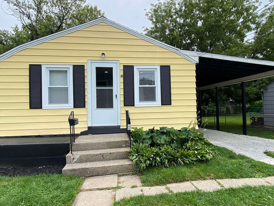 Beautifully Updated 2 bedroom Ranch Home close in town! Updates include vinyl windows, new front door, roof, new kitchen with white cabinets, new countertops and sink, stainless steel appliances, vinyl plank flooring, new carpet, fresh paint inside and out. Updated bathroom. All clean and bright! Big fenced yard with storage shed and big car port!