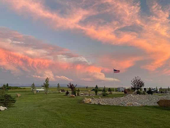 This property sits in the heart of central Montana with views of 3 different mountain ranges. Enjoy out of town living within 1 mile of city limits. Single level 2064 sq ft home situated on 5.616 acres with a 4000 square foot shop and 2 cold storage buildings. House features a nicely updated kitchen with tons of storage, large pantry, open floor plan, large master bedroom with Walkin closet and a nice entry mud room. Covered patio with hot tub off of master bedroom. Living room has a wood stove and access to the covered stamped patio. Outside features a Shop with a huge work area with a 5-ton crane, office, 1/2 bathroom, and a walk-in meat cooler. This property also includes extensive landscaping.