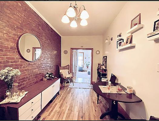 Charming 1 bedroom / 1 bath with exposed brick and gleaming hardwood floors. This apartment features a flexible layout with 2 sets of french doors on either end of the apartment. Currently configured with the living room in the front, dining & kitchen in center, and bedroom in the rear. Please note, the bathroom is located off of the rear room. Fantastic location steps from Myrtle Avenue in Clinton Hill. Plenty of great bars, restaurants and amenities at your door step. Pratt Institute is conveniently located around the corner. Heat & hot water included. Guarantors accepted. Cats ok, small dogs case by case. Broker fee applies.
