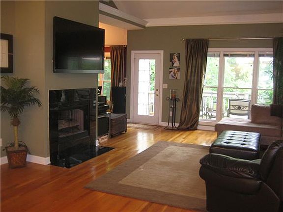 Light, bright & cheerful. Very open w/13 ft. ceilings in great rm. Large pvt deck looking into trees. Hdwd floors except in BR's and bonus. Large eat-in kit. All BRs have their privacy. 4th BR could be office. Perfect for entertaining. Great flow.