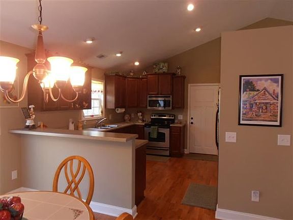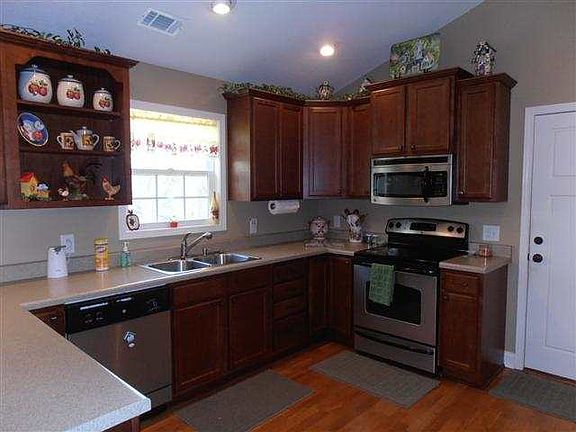 Built with quality and kept with care, this 3 year old Craftsman inspired home has a nice setting on a large lot and a wonderful open plan. Hardwood floors grace the main living areas, and vaulted ceilings in the living room, dining area and kitchen give the home a very spacious feel. The kitchen has custom wood cabinetry with some open display shelves, stainless steel appliances, a breakfast bar and pantry. The master bedroom features a tray ceiling and a bath with double sinks and a glass door shower. The rear deck , with views towards the woods, makes a nice place to relax and I-85 is just minutes away.