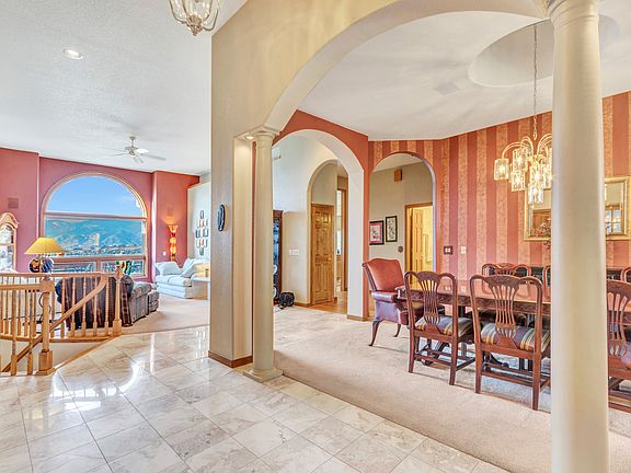 VIEWS, VIEWS, AND MORE VIEWS!! Imagine waking up to the panoramic views of Garden of the Gods&Pikes Peak just outside your window. Enjoy hosting family and friends on your massive back deck while gazing at the panorama of Cheyenne Mountain and American?s Mountain. Watch your view come alive each night as thousands of twinkling lights adorn the skyline below.. A spectacular entrance welcomes you right as you walk in. This beautiful Home also offers 56? x 20? indoor pool overlooking the panoramic & breathtaking views. VIEWS, VIEWS, AND MORE VIEWS!! Imagine waking up to the panoramic views of Garden of the Gods and Pikes Peak just outside your window. Enjoy hosting family and friends on your massive back deck while gazing at the panorama of Cheyenne Mountain and America?s Mountain. Watch your view come alive each night as thousands of twinkling lights adorn the skyline below. A spectacular entrance welcomes you right as you walk in. This beautiful home offers true, one level living. On the main floor you'll find a formal living and dining room, FR & home office, custom wood built-ins deluxe Master Retreat has a fireplace sliding doors to allow private access to the back patio. High ceiling foyers, a gourmet kitchen, breakfast nook, wet bar, and powder room. The lower level of this spacious home has an open floor plan with lots of natural lighting as well as a 56? x 20? indoor pool overlooking the panoramic & breathtaking views. It also provides additional space to entertain & relax, with a billiards area and wet bar area with mini-fridge, microwave, built-in oven&an additional family room. MOTHER IN LAW QUARTERS cozy up to watch a movie or the big game with 12 foot ceilings throughout the lower level, where you?ll also find a fitness room. ENJOY THE Brand NEW ROOF.