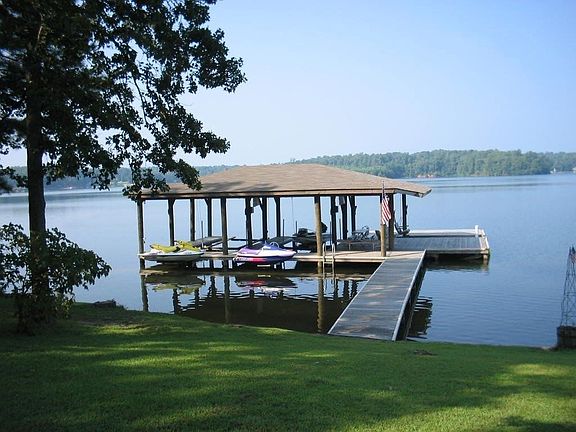 Come Make Memories Beautiful view & a lake house that takes advantage of it! Greatroom & kitchen have windows overlooking the lake. Master bedrm has picture window with stunning view. Enjoy the sunsets and fireworks from the deck. Seawall, large dock with covered slips and floating dock; storage building by the water. Price includes most furniture. $609,000