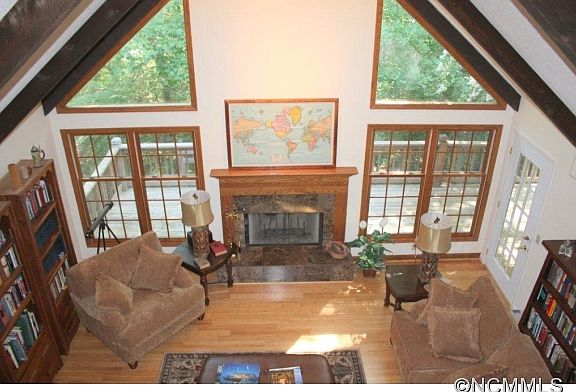 Spacious Cape Cod home, the main level features an open beam cathedral ceiling, screened porch, office/ library, and master suite, lower level medial room, rec/game room, bedroom, and bathroom, upstairs two bedrooms, a Jack & Jill bathroom and computer nook, situated on a private, wooded lot in one of Flat Rock's most desirable communities, Claremont.