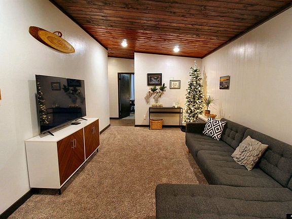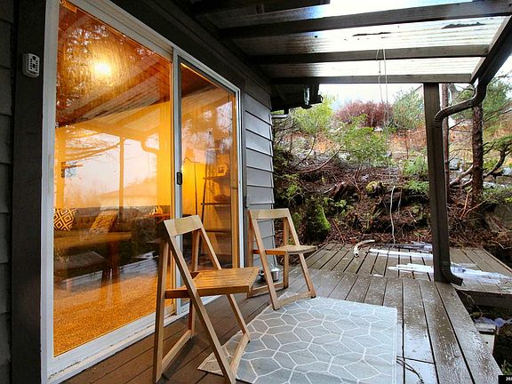 Updated, Single Family Ranch with Commercial Zoning. Located on a private road, this vaulted ceiling, single story, three bed, 1 bath is complete with many updates, not limited to new lighting, flooring, and interior and exterior paint. The welcoming sitting area showcases the new, modern laminate flooring, leading to the dining area, surrounded with windows. The stylish kitchen includes a gray tiled backsplash, sink with overhead mounted multi-colored glass balls, and powder blue cabinetry with under-cabinet lighting. Just off the kitchen, on a nice day natural light shines through the sliding glass doors into the inviting, living room. All three bedrooms have new carpet, paint and are conveniently accessible. An overhauled bathroom includes a stackable washer/dryer, vanity and rustic shelving. Utilize the covered, front deck with new deck boards and handrails for outdoor seating and storage underneath. This property cannot be financed with a traditional mortgage, by reason of Sunset Drive lacking a Road Maintenance Agreement. Cash will be required to close.