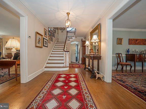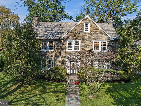 This classic center foyer stone colonial, constructed in 1933 and nestled in the sought-after Northside Haverford neighborhood, exudes enduring charm and elegance. Topped with a varied color slate roof, it carries an air of sophistication that stands strong over time. As you step inside, you'll find handsome hand-pegged floors that flow seamlessly through the formal areas. The living room is generously bathed in natural light from three different directions, and French doors invite you to the peaceful blue stone terrace. A fireplace with a marble surround and wooden mantle provides a cozy centerpiece. The dining room, with its chair rail and bay window, creates a welcoming space for large or intimate meals. The updated kitchen is a culinary haven, featuring a ceramic farm sink, Subzero refrigeration, and a practical 6-burner gas range with a griddle and. Added convenience comes in the form of a powder room, mudroom, and a discreetly tucked-away office space, all conveniently connected to the garage. Climb the graceful staircase to the second level, where you'll find all five bedrooms. The primary suite is a personal retreat, boasting an ensuite bath, a fireplace, abundant southwestern sunlight, and three roomy reach-in closets. An adjacent bedroom, originally intended as a nursery but now an office, offers flexibility and potential expansion for the primary suite. The third bedroom enjoys its own private bath with a tub/shower combination and a closet. Continue down the hall, passing a handy laundry shoot and double linen closet, and you'll discover an attractive second-level den featuring rich wood paneling, hardwood floors, a vaulted ceiling with overhead wood beams, and a stone-clad corner fireplace—a comfortable space for gatherings or work. Completing this level are two more bedrooms and two additional baths, along with a convenient back staircase for ease of movement. The lower level reveals a haven for recreation, with bead board paneling, built-in desks, another fireplace, and ample shelving. It also houses the home's laundry and storage facilities. Outside, the property is fully fenced and boasts a charming front yard with a delightful tree swing, creating the perfect spot for outdoor enjoyment. The location is unbeatable, with a short walk to the delightful shopping and dining options of Haverford Square. The nearby R5 train station provides easy access to the city. Nature enthusiasts will appreciate the bird sanctuary nearby, and the expanded neighborhood encourages exploration and a sense of community. In essence, this classic colonial residence embodies timeless grace, modern living, and an unmatched sense of home—a gem of Northside Haverford.