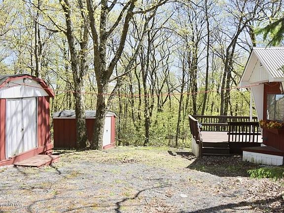 Back on the market. Sold as is. Secluded yet close to major roads, just off Sullivan Trail, Winter views of Camelback ski slopes, 3 bedroom 2 bath mobile home with deck, detached two car garage, storage shed, shed with washer and dryer.