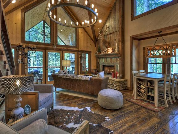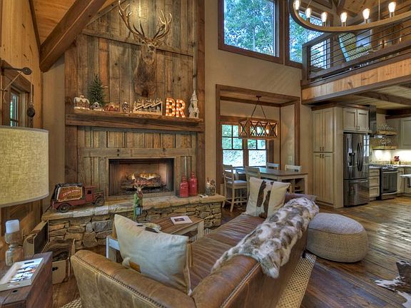 Spectacular 3/3.5 custom home on the banks of Hemptown Creek. This Marc Nicholson built home is the perfect blend of rustic & modern w/ luxury finishes throughout. Spacious kitchen w/ adjacent dining, granite countertops, high end appliances & gorgeous chandelier. Large, open great room w/ stone fireplace & lots of natural light. Step outside to the covered party porch w/ fireplace & lots of room to entertain. Master on main features barn doors, tile shower, double sinks & walk in closet. Upstairs features a loft sitting room or additional sleeping area, additional bedroom w/private balcony access & adjacent bath w/ tile shower, double sinks & granite countertops. Terrace level has an additional bedroom w/ ensuite bath, 3rd fireplace, great room & bar. Your own backyard oasis features a rushing creek w/island & expansive decks to take it all in. Gorgeous mature landscaping & privacy!