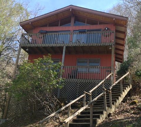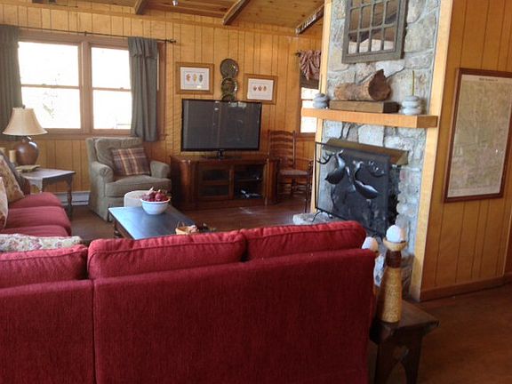 WHOA!! HUGE REDUCTION ON THIS VIEW-3/2 HOME + MOTIVATED SELLERS!!3 BEDROOM, 2 BATH CHALET with TERRIFFIC LAYERED Mountain VIEWS across the NC Mountains into Tennessee! CLOSE to FRED'S & SLOPES! 3 Decks + Lots of windows/all hardwood floors, tongue'n'groove vaulted ceiling & BIG, Stone Fireplace (gas equipped for those RARE days w/out power!)Partially-Covered, back deck for dining under the Showers! BRIGHT, AIRY, Mountain-ly Furnished......and ready to go!! Large parking area + creek + cut-thru to Trail lined w/Berries! Larger 1/2ac Lot! Just bring Jammies & Tooth brush!! CURRENT Beech Mtn Club - $2500 app $ transfer fee to new owner!