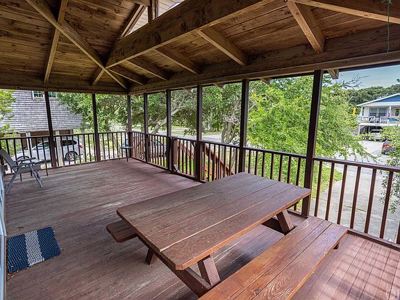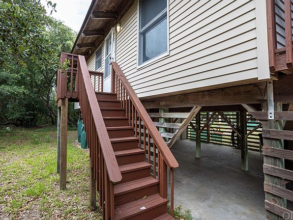 Welcome to your dream home in the heart of Kill Devil Hills! This immaculate 3-bedroom, 2-bath gem offers 882 sq. ft. of living space and is perfectly situated between the highways, near the Wright Brother's Memorial and just a short walk to the Asheville beach access, making it ideal for beach lovers. As you approach this charming cottage, you'll be greeted by a large covered front porch, perfect for relaxing and watching the sunset. Inside, the exposed beams and cathedral ceiling add character throughout the entire home, including the bedrooms and baths. The great room offers a spacious and inviting atmosphere, complemented by an open concept design that's perfect for entertaining. The well-appointed kitchen with an eat-on bar adds to the home's appeal.This home comes fully furnished with tasteful decor and all necessary appliances, making it move-in ready or perfect for starting a rental property. Additional features include vinyl sliders, hurricane shutters for peace of mind, a newer roof, new water heater, and a butler lift to make bringing groceries upstairs a breeze. The ground level features a double paved carport, outdoor shower, and a utility room with a washer and dryer. Don't miss out on this charming and well-maintained home. Whether you're looking for a permanent residence, a vacation getaway, or a rental investment, this property has it all.