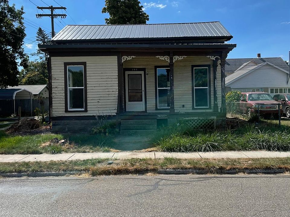 This three bedroom project has a lot already started. New windows, new metal roof, Pex plumbing, and electric started. Large living room, dining room, kitchen offers maple cabinets, one bedroom on main two upper level. Nice covered porch, there is concrete slab in back was previously a garage. Materials in home will remain with sale including new hot water heater. Home has high efficiency furnace. Cash offers only. Sold as seen