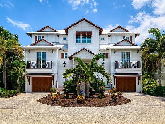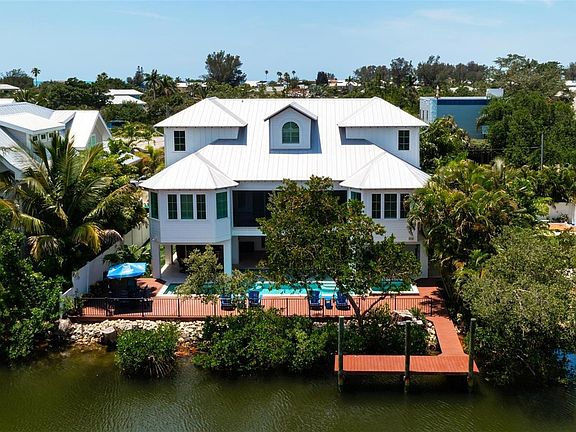 DIRECT WATERFRONT on Anna Maria Island. This impeccably built home by Mason Martin Builders comes turnkey furnished and features 4-bedrooms plus an office and 4.5-baths. The home is located on a canal in the heart of Anna Maria. The open floor plan on the main level is perfect for entertaining or family living. You'll find rich hardwood flooring, beamed and vaulted ceilings, a great room, an elegant dining room, and a gourmet kitchen. The ideal space for gathering - this kitchen is every chef's dream, with shaker-style wood cabinets, quartz counters, a large center island, a breakfast bar, and stainless steel Jenn-Air gas appliances. In addition to 4 large bedrooms, you'll find an executive office with elegant built-in cabinetry and double wine fridge. The sumptuous master suite boasts vaulted and beamed ceilings, two walk in closets, a beautiful bathroom with double vanities and a spa-like shower. Outside, you're surrounded by lush tropical landscaping for ultimate privacy. Enjoy tons of outdoor living space, covered and uncovered. The large saltwater pool has a shallow lounge area and a spa with waterfall. Stay and relax by the pool or take off in your boat from the dock to enjoy the Gulf of Mexico. This home has every upgrade, from Bermuda shutters, the pavered drive to your 3-car garage, to a security system, and elevator to all three levels. If you're looking for ultimate luxury and clean coastal design - you've found it! Come and enjoy all that Anna Maria Island has to offer! This home is walking distance to restaurants, boutiques, and the beautiful sandy beaches of Anna Maria.