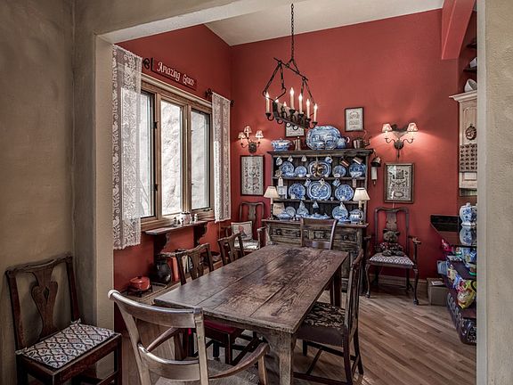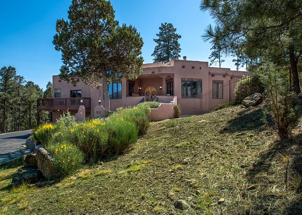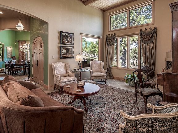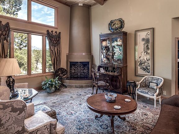 WARMTH ABOUNDS IN THIS STUNNING COLONIAL STYLE SANTA FE HOME W/ EXQUISITE DETAILING THAT INCLUDES 12 FT. CEILINGS W/ VIGAS , 3 FIREPLACES, CUSTOM PAINT, NICHES, ARCHES, ONE OF A KIND ANTIQUE FIXTURES & CUSTOM WINDOW TREATMENTS. CURB APPEAL IS A 10 FOR THIS ELEGANT BEAUTY THAT IS PERCHED ON A GENTLY SLOPING HILL & TAKES IN A SIERRA BLANCA VIEW. MAIN LEVEL FEATURES TWO LIVING AREAS, FORMAL DINING, 3 BEDROOMS PLUS AN ENORMOUS OFFICE THAT COULD BE USED AS A 4TH BEDROOM. GRANITE KITCHEN WITH EAT IN AREA. MASTER FEATURES A COZY SITTING AREA W/ FIREPLACE. DOWN STAIRS IS VERSATILE REC/GAME ROOM THAT IS NOT INCLUDED IN S.F. INCREDIBLE STORAGE UNDER HOME.