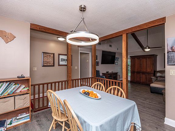 Nestled on a quiet cul-de-sac and backing up to a wooded area, this updated, pre-inspected, and well maintained 3 bedroom 2 bathroom home will be your own private oasis!! As you enter you'll be greeted by wood floors that run throughout the living space. Large windows in the dining room let in plenty of natural light, and the fully remodeled kitchen features custom tile countertops, new dishwasher, and new disposal under the sink. The luxurious master suite includes a renovated bathroom that is accessed by a barn door and is adorned with custom tilework and shiplap. Entertaining guests will be a pleasure in the spacious living room that boasts vaulted ceilings with exposed beams, and surround sound speakers that connect to an outdoor sound system on the covered patio. The large .3 acre lot features a fenced back yard and includes covered boat or RV storage (with power hookup), a fire pit, playground with swings, trampoline, and a batting cage. New 30 year architectural shingles were installed in August 2020, and come with a transferable warranty!! This home is only minutes away from shopping and award winning local restaurants. It provides easy access to I-26, Azalea Square, Nexton, and Volvo. Don't miss your chance to see this incredible value in Sangaree!!