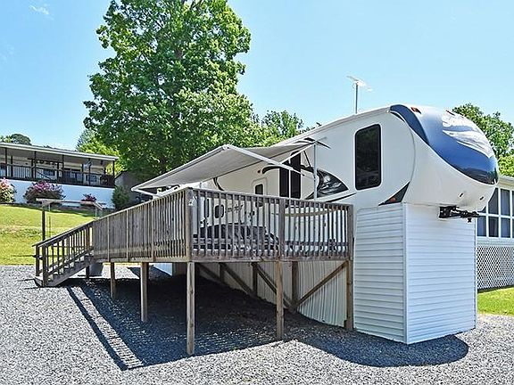 Your perfect vacation spot at Badin Lake Shores! Escape to tranquility in this gated lakefront community! 5th wheel camper featuring a master bedroom, nestled at one end, with a full bathroom for your convenience. Another bedroom with four cozy bunk beds and a half bath ensures ample space for family and guests. Gather in the open kitchen, dining, and den area, perfect for hosting memorable moments with loved ones. Fire up the grill and enjoy quality time in the great outdoors, with abundant parking for cars, boats, and golf carts. Indulge in the resort's amenities, including a swimming pool, sandy beach with a designated swimming area, basketball courts, volleyball, playgrounds, and a fishing pier. Unwind at the clubhouse, or relish waterfront views from the boardwalk restaurant. Experience a harmonious blend of relaxation and recreation at this idyllic lakeside retreat.