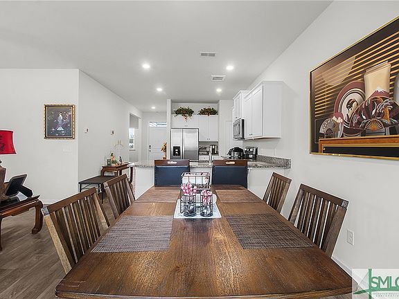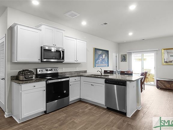 Welcome to 106 Troupe Drive, located in a desirable gated neighborhood in Savannah Highlands. Featuring an open split floor plan, the kitchen is a standout with stainless steel appliances, granite countertops, and breakfast bar, seamlessly connecting to the dining space. The pantry includes custom roll-out shelves, providing convenient storage solutions. The primary suite has an en-suite bathroom and a walk-in closet with LVP flooring throughout the entire home. Down you will find two spare bedrooms and second full bathroom with ample closet space. The fenced backyard and patio is perfect for outdoor activities and gatherings. Community amenities included a refreshing swimming pool w/water slide, playground, an exercise facility, and volleyball courts. This home offers the perfect blend of convenience and tranquility. Conveniently located near I-16/95, Savannah International Airport, all of the great amenities in Pooler, Gulfstream, JCB & more!