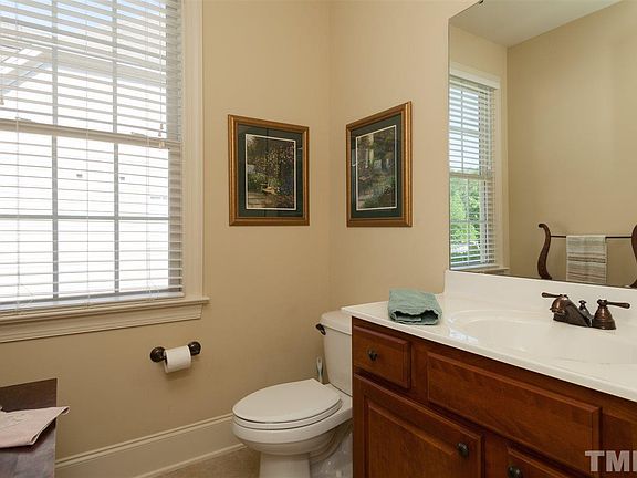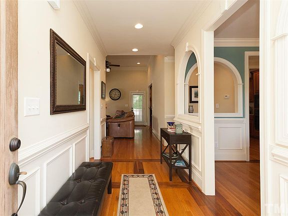 Custom built home with 4 bedrooms, 2.5 baths, office, formal dining room, eat in kitchen with bar, living room has built-in bookshelves, downstairs Master Suite has an enormous bath and closet with direct access to the laundry, upstairs bonus room, nicely sized bedrooms, site finished hardwood floors, grilling deck, serene screened porch overlooking fenced backyard with lovely landscaping. All this plus easy access to I40 for commute and White Oak Shopping Center! Seller will give $6k for paint/carpet all