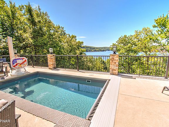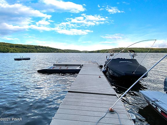 Lake Wallenpaupack custom built 4 bedroom, 3.5 bath smart home, set on a private 1 acre w/over 3,500 sf of living space & an outdoor oasis. This luxurious home features cathedral ceilings in the open concept living area, a stone FP, gourmet kitchen w/quartz & Sub Zero/Thermador appliances. The master suite is located on first w/a marble shower, soaking clawfoot tub & spacious walk-in closet. Retreat to the 2nd floor loft & take in the gorgeous views. Entertain in the lower-level walk-out rec room. The outdoor area features a covered porch, two-tiered Trex deck w/breathtaking views, a pool, patio w/firepit & TV area. Take the path to the boat & swim docks. Large yard, paved driveway, 2.5 car garage, radiant heat & central AC, generator, unfinished bonus room plumbed for bath above garage.