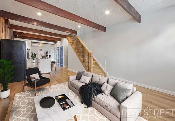 Welcome to 106 Utica Avenue, a renovated single family townhouse located in a bustling, and up and coming part of Crown Heights. The smart layout which spans across three floors, is currently configured with 2 flex 3 bedrooms and 2 full bathrooms. On the first floor you will find a large open concept living room and dining room with a kitchen in the middle perfect for entertaining and family gatherings. The kitchen features stainless steel appliances including a dishwasher and granite counters. The dining room looks out onto the large, private garden, accessible through the large sliding glass doors. The main floor also features exposed beamed ceilings, wooden paneled ceilings and rustic beams and exposed brick. Lending a truly unique and authentic feeling to this one of a kind home. After making your way up the staircase, you will find two spacious bedrooms one in the front and the other in the back, both complete with custom closets and large windows flooding the rooms with sunlight. The bathroom is in the middle of the floor and is complete with a deep tub, modern tiling and a sunny sky light. The lower level features a large room with custom closets and a glass door leading out to the backyard, this room can be used as additional living space or another bedroom. And is equipped with a full bathroom with a large deep soaking tub. The exposed stone lends a cozy and rustic feeling to this room. In the front is the laundry & mechanical room and a separate entrance leading to the street which can allow for a great guest suite... Just a short distance to the A,C,2,3,4,5 trains at Utica and local coffee across the street and right around the corner from noteworthy restaurants like Saraghina, Peaches, and Beso.