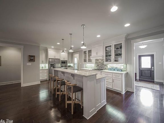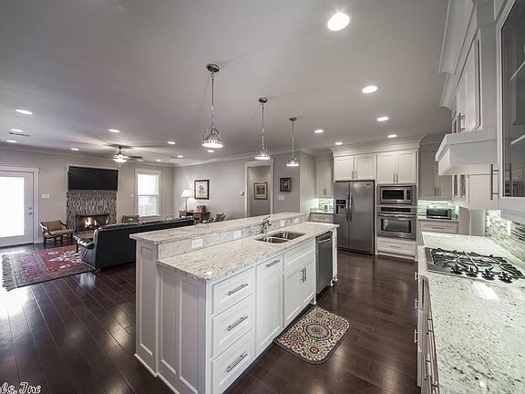 Contemporary kitchen with granite counters, gas range and breakfast bar. Spacious master suite includes large walk in closet. Master bath has separate shower, jetted tub and double vanity. Level fenced yard with sprinkler system.