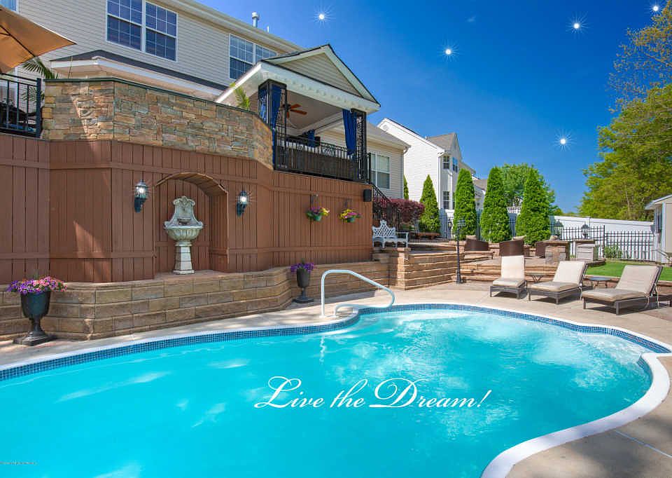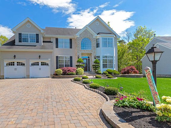 Live the dream at this exceptional 5 bedroom 3,100 + sq ft home w a full finished basement & outdoor amenities that scream ENTERTAINMENT! Experience the value of a million dollar home at a price tag you can afford. Well designed floor plan features formal dining & living rooms leading to a custom kitchen and family room w wood burning fireplace and cathedral ceilings. Teen suite on first level. Hardwood floors throughout. Finished basement to die for including custom bar and gas fireplace. Truly amazing backyard w heated in ground salt water pool, trex deck, outdoor kitchen, hot tub and gorgeous landscaping. Private yard backs to woods. Close to GSP, LBI, Barnegat Bay, AC, NYC and Philly. Value Galore!