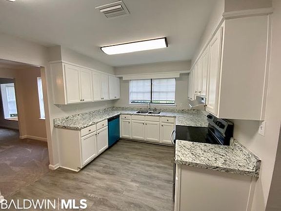 This 4 bedroom, 2.5 bath home sits in a great location just off of Hand Ave in Bay Minette. Home has been recently updated to include LVP in the kitchen, bonus room and utility room. New carpet/padding in living room, hall and all four bedrooms. Fresh interior paint from ceiling to baseboards throughout to include kitchen & utility cabinetry and bathroom vanities. New counter tops, lower cabinets in kitchen with new doors on upper cabinetry. New led lighting in kitchen. New vanity and toilet in half bath. Exterior doors, trim, shutters and attached carport have been freshly painted. New stove and dishwasher has just been installed. One year term bond included.
