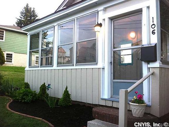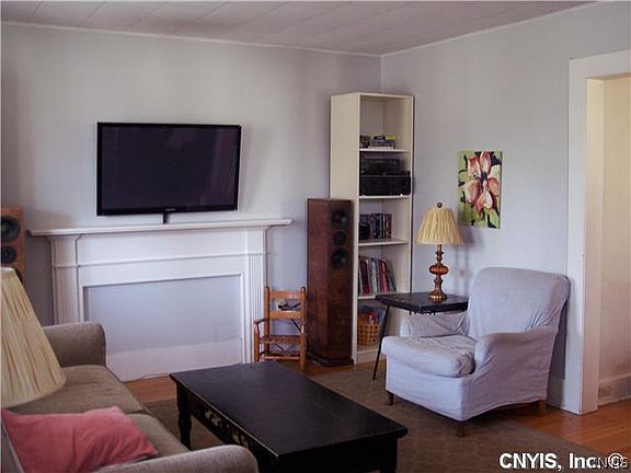 CHARM AND WARMTH ABOUND IN THIS ADORABLE HOME. 3 bdrm (w/possible 4th bdrm), 1 bath home that is in move-in condition! Hardwood floors, large eat-in kitchen & formal dining rm Enclosed front porch, heated garage that has been used as an office and studio in the past, double city lot with fully fenced/private back yard. Recent updates include new hot water heater, furnace, shower surround, gas range, microwave, kitchen flooring, cedar fence. Taxes do not reflect STAR exemption Schedule your showing today!