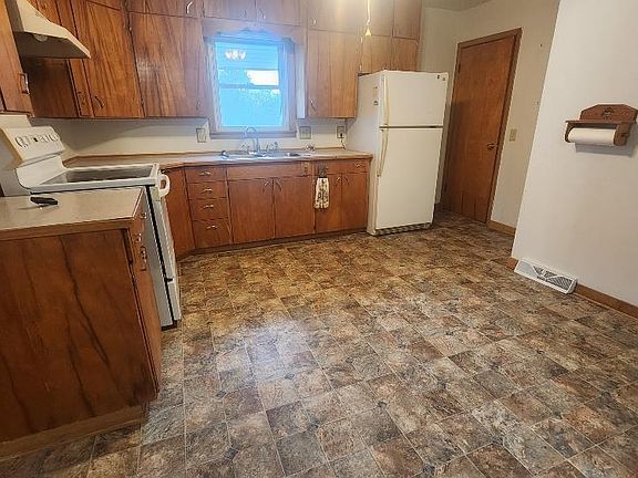 Circa 1909 4 bedroom 2 bath 1,346 square foot home with main floor laundry, eat in kitchen, main floor master bedroom with private bath, breezeway, and attached garage. Great location to the school bus route, park, and downtown.