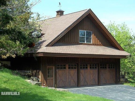 (js48)(gt) Stone pillars and cedar siding create a stunning exterior for this impressive 5 bedroom 4.5 bath home built with privacy in mind on a beautiful 2.4 acre lot. This property has the added benefit of 8 acres of greenspace (property that can not be developed) surrounding its borders. The upscale kitchen has a warm and welcoming feel with custom made cherry glass front cabinetry, granite countertops, quality stainless steel appliances (Sub-Zero refrigerator and gas stove) and a cozy breakfast nook. The beamed wood clad lofted ceilings and maple wood floors extend from the kitchen into the great room where the focal point is the floor to ceiling stone fireplace. Access to the extensive main level deck can be made from this area. You can find an entrance to the private back yard patio from the light and airy sunroom/ solarium. The spacious Master bedroom suite offers a fireplace, sitting area, private entrance to the deck and a luxury bath with whirlpool, walk-in tiled shower and a double vanity in the custom cabinetry. You will also find the laundry and a craft room on the main level. The upper level has a relaxing guest bedroom with private bath, fireplace and a loft overlooking the great room. The walkout lower level features 3 bedrooms, stone fireplace, wet bar, pool table area and a storage room. The home has an attached 2 car garage plus an additional detached 3 car garage with its own septic system, LP tank, heat and A/C and a finished multiple use upper level.