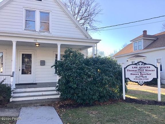MILFORD GEM: 106 W High Street, Milford, Pa Make this your home! Don't miss an amazing offer! You can't get more quaint and central a home than this beautiful Milford borough historic gem, c 1900, 2 BR, 1 1/2 Bath, and parking. ... steps from beautiful Broad Street, town parks and shops, and moments from the Delaware River and trails. Perfect for a residence (has been an office, so there is a variance for that!) and located in the center of the borough of Milford, Pa. A one and a half story building, with nine parking spaces in the back and directly in front,''street-parking.''! Floor one: Perfect double living room, dining room and kitchen.Floor two: Two Bedrooms, bonus room adjacent to the smaller of the two. Ample finished dormer closets to all bedroom