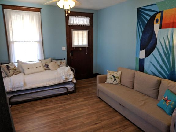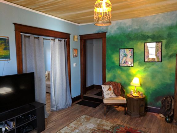 Spacious, clean and beautifully decorated this turn-key home is FULLY FURNISHED and ready to go June 5th. Water, sewer, trash and yard work is INCLUDED with rent. Large yard and private patio/seating in back. One designated off-street parking space. Front loading washer and dryer in basement. Stainless steel appliances in kitchen. Gas stove. Tile and wood like flooring throughout. Master bedroom upstairs with large closet. Bathroom also upstairs with separate shower closet. Front room set up as spare bedroom with curtain divider. Well behaved pets welcome, no extra pet fee. Walkable neighborhood with parks nearby. $825/mo, $825 deposit. Background and credit checks for potential tenant $39.99. Available for rent 06/05/19 **schedule a free tour Pictures can only show so much of this unique property. It truly is one of a kind. You'll feel right at home! Bedding, linens, cooking items, toiletries are all INCLUDED with this rental. Read Less Owner pays water, sewer, trash, and yard work, tenant pays all other utilities