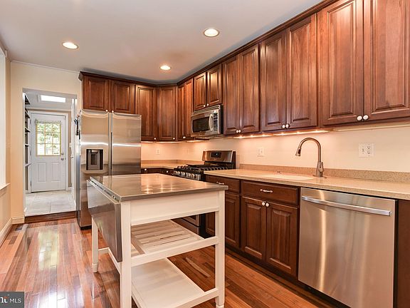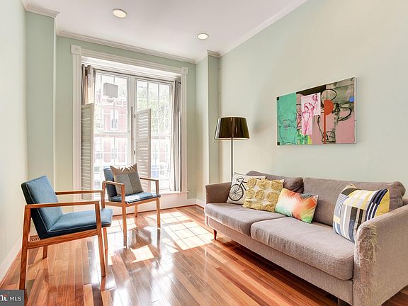 Enjoy the best of city living in this updated row home on a quiet block in the coveted Federal Hill neighborhood close to the best Baltimore has to offer! The home features delightful charm with modern amenities showcasing soaring ceilings, and a freshly painted neutral color palette. The lovely living room boasts oversized sunny windows and gleaming hardwood floors. An inviting dining area has a bar area hosting a wine fridge and custom cabinetry is perfect for entertaining. Cook gourmet meals in the amazing kitchen adorned with stainless appliances, an island, granite counters, ample solid wood, soft-close cabinets and gas cooking. There is a conveniently located main level powder room and laundry area. On the upper level is the primary bedroom highlighted by soaring high ceilings, crown molding and custom shelves and cabinets. There are two additional generously sized bedrooms each with their own unique charm. The full bath offers a claw foot soaking tub. On the lower level is a sizable amount of unfinished space just waiting for your imagination. Relax and unwind outside on the welcoming patio inside the fully fenced rear yard. Walk to restaurants, shopping, ballparks, museums and parks! Roof replaced 2018. 1 year Cinch Home Warranty