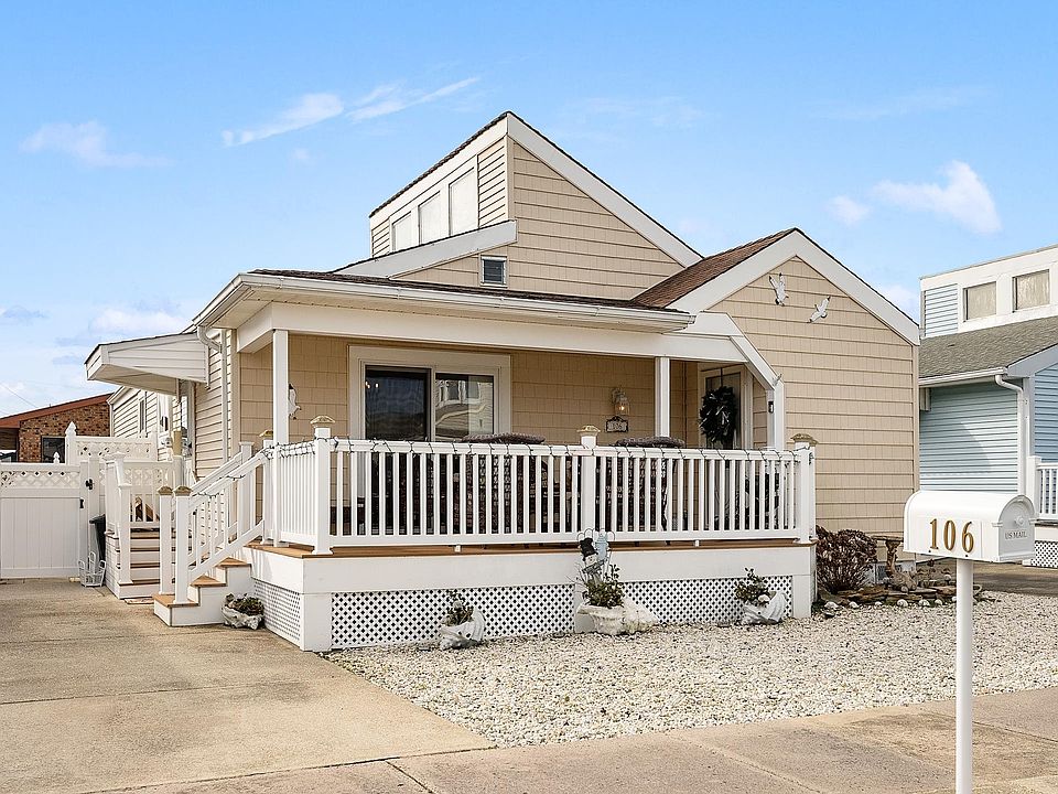 Absolutely Gorgeous Single Family 3 Bedroom 2 Full Bath Renovated Home in the Highly Desirable South End of Sunny Wildwood Crest. Situated on a Quiet Residential One Way Street this Beauty has been updated with numerous features including Plush Hardwood Flooring in the Living & Dining Areas, Dramatic Vaulted Ceiling in the Living Room, 2 Beautifully Tiled Baths with Granite Tops ( 2015 ), Elegant Plantation Shutters, Andersen Sliding Window in the Dining Area, Custom Paint and Hunter Douglas Window Dressings, Remote Control Retractable Window Shades for the 3 Overhead Living Room Windows, Large Covered front Porch with Trex Style Decking (2018 ), Newer Central A/C, Gas Heat and Gas Hot Water Heater, Ring Security System, Spray Foam System in the Crawl Space, Stylish Kitchen complete with Updated Cabinetry, Stainless Steel Appliance Package, Granite Counter Tops, Tile Back-Splash, Ceramic Tile Flooring, 3 Spacious bedrooms including a Large Master Suite with Private Tiled Bath and so much more!... Enjoy the Cool Bay Breeze and lots of summer sun in your Private Fenced in Back Yard complete with Secure Storage Shed and Outdoor Private Shower. Take a short stroll to Wildwood Crest's Award Winning Beaches or picturesque Sunset Bay. Perhaps a Quick 9 minute ride to Victorian Cape May. If you prefer to stay home and relax on your Large Private Front Deck; enjoy modest Bay Views and Gorgeous Sunsets. This perfect Shore Home can be yours and the Price is Right! Call Today for your Private Showing before she gets away!