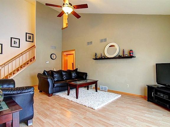 Spacious & sunny end unit! 2 bedrooms, 2 full bathrooms, 2 car attached garage + a fully finished lower level with over 800 sqft. Main level features: open kitchen w/ abundant counter & cabinet space, cathedral ceiling, laminate floors, neutral colors, updated fixtures and a triple window in living room leads to oversized deck. Patio off large master bedroom too! Upper level has a huge bedroom & full bathroom. Clean, bright and all appliances are included. Easy access to I90/94, 51 and more.