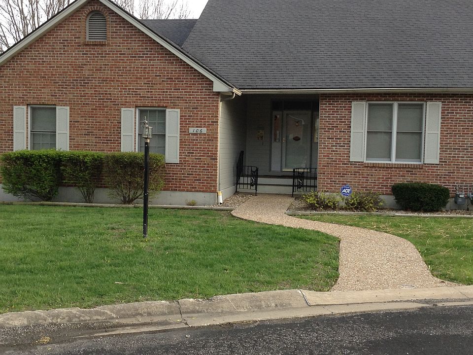One-story, ranch style townhouse brick/hardboard exterior wood deck, underground utilities, central cooling, natural gas heat, full basement, 2-car garage, 2 bedroom 2 bath on main level, finished basement with 3/4 bath. Located on quiet cul-de-sac in Walnut Park. Not far from Sedalia Country Club.