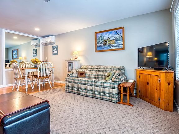 OSSIPEE LAKE BERRY BAY WATERFRONT CONDO! Enjoy this amazing, 4 season condominium community with amazing views of the lake from your living/dining area and bedroom. Experience amazing sunsets from your own private gazebo oasis and lovely landscaped grounds. Fully furnished, updated and well taken care of by the same family for 37 years. Has 2-levels, open concept living room, dining and kitchen area with counter bar, laundry/utility room, pantry closet and 1/2 bath. Upstairs has full bathroom, large primary bedroom with double doors that open to a balcony and view of the lake. Second bedroom has double sliders which open to a back deck and second exit/entrance that leads to parking lot. This is the best placed unit in complex with nothing blocking views or access to lake. Shared sandy beach and lake frontage, day dock, boat mooring (often available) and basketball court. King Pine ski area, snow mobile and hiking trails all close by.