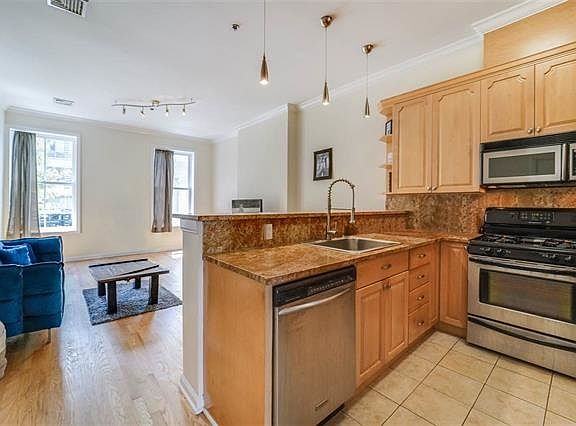 Half Broker Fee Paid! Location! Location! Location! This spacious 3 bedroom, 2 full bath unit in downtown Hoboken is a commuter's dream. The bright and airy unit boasts hardwood floors and crown molding thru out, washer/dryer in unit, stainless steel appliances, granite countertops, custom maple cabinets, and high quality window insulation for quiet living. Brand new bathroom vanities just installed too (not photographed)! Open living space with kitchen island bar which can easily fit 4 bar stools. Ceiling fans featured in all bedrooms with one on opposite end of apartment which is great for privacy. Bedrooms all comparable size. Abundant closet space and natural lighting thru out and only one flight up! Located just four blocks from path, steps from the bus stop and minutes from the water! Enjoy shops, bars, restaurants and all Hoboken has to offer!