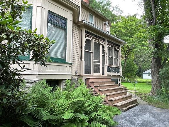 Beautiful classic Victorian home in the heart of charming Coudersport, PA on 1.09 acres with a lovely yard and nestled up against a wooded hillside. This home features an amazing carved oak staircase in the foyer, oak trim and floors, 3 living rooms, 2 fireplaces, an office, formal dining room, pantry with lots of storage and laundry hook ups, nice sized kitchen, 5 bedrooms, 1.5 baths and beautiful windows with stained glass on the tops. You can sit on the covered front porch and visit with friends or read a book on the quiet screened in side porch. There is an enclosed back porch you can use for potting your flowers. The yard nicely landscaped and there is a detached 2 car garage with walk-up attic storage. The home sits just a couple of blocks from the center of town. Call to see this beauty today!
