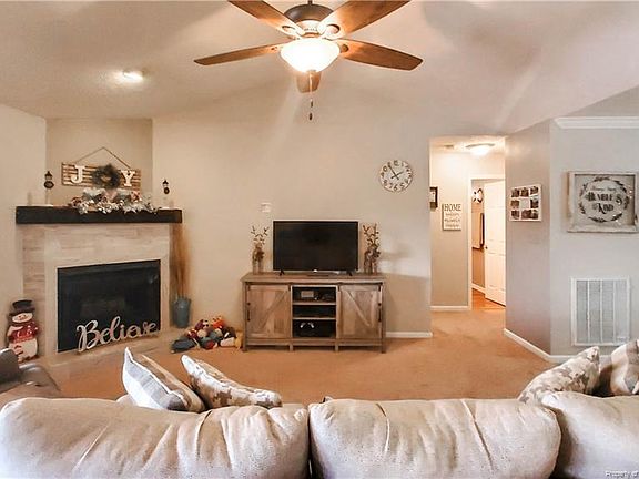 WATERFRONT!! Gorgeous 3 Bedroom, 2 Bath lakeside home in Carolina Lakes welcomes you with breathtaking views of the lake. This ranch home includes an eat-in kitchen with stainless steel appliances and pantry storage cabinet, covered 22x12 rear porch, and dock for your summer entertaining. This open floorplan offers vaulted ceilings and a cozy living room with a gas log fireplace for the perfect place to unwind after a day of boating. A split floorplan, the master bedroom is spacious and boasts those beautiful views of the lake. The Master bathroom has split walk-in closets, dual vanity, a separate shower, and a jetted tub. An added bonus is the 1400sqft partially finished basement/workshop. This home within the gated and guarded community of Carolina Lakes includes the added amenities of the community pool, beach area, tennis/basketball courts.