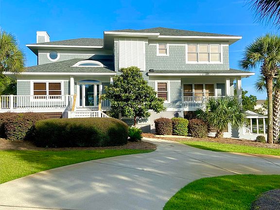 Welcome to the neighborhood of Forest Sound in Hampstead, NC. This custom-built, coastal-styled home will immediately welcome you home as you drive up and around the circular drive with palm trees and a beautifully landscaped yard. Imagine welcoming your guests into the home through the spacious foyer with its open staircase and gorgeous hardwood floors. Entertain in the formal dining room or around the kitchen and kitchen nook that has space for a full-size dining room table. Cozy up in the main living room around the elegantly designed fireplace with a perfectly styled shiplap accent wall. The primary floor has a walk-in pantry, 2 bedrooms, a full bathroom, and a true laundry/mud room with a separate entry from outside. Upstairs you will find 2 additional bedrooms, 2 full bathrooms, an office, and the primary bedroom with a large ensuite bathroom and walk-in closet. Three of the 5 bedrooms have access to decks facing the backyard and an inground pool. The basement/1st floor level has 2 separate flex space rooms and access to the 2-car garage. This home defines outdoor living and relaxation with the beautiful covered back deck and inground pool. Pull up your lounge chairs to the pool or enjoy the sweeping back yard. This lot is a gem with 1.63 acres, a separate shed with attached carport, plenty of driveway space and room to park a boat. Forest Sound has a deeded boat ramp with parking for your boat trailer or golf carts. This property is truly calling you home.