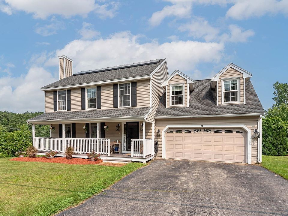 Here is your second chance to own this lovely, well-maintained home! The floor plan here was opened up on the main level to create an open concept kitchen and dining area in the back of the house. In the desirable Wellington Ridge, it is on the quiet side of the neighborhood, on one of the largest lots- 1.48 acres! Through the front door on the adorable farmers porch, walk into the spacious living area featuring a gas fireplace. Entering through the attached two car garage, with a brand new garage door, it is so convenient to bring your groceries right into the kitchen! Off of the dining area is a three season room overlooking the backyard and leading to the back deck- perfect for grilling! Walk down to the backyard from there or from the finished walkout basement. Upstairs are four good sized bedrooms and a newly updated bathroom. Enjoy saving money on those high electricity bills with your new leased solar panels! The lease is easily transferred to the new owner. Hardwood is throughout the main living areas and the central AC & irrigation system will be key to getting through the end of summers heat. The free little library will be filled prior to closing. This is a great commuter location with easy access to I93 and 101, downtown Manchester, & trails of Lake Massabesic. Previous buyers financing fell through.