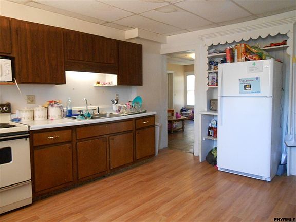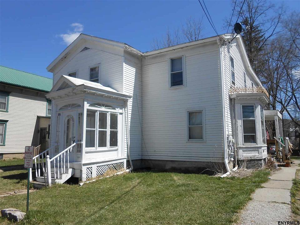 2 family home located in a great walking village, close to all amenities. Both units are always rented building needs some cosmetic work. The lot offers off street parking on both sides of home and a detached 1 car garage and small workshop area. Tenants pay all utilities. Off street parking for 4 and a small yard. Owner says sell, fully rented and priced to sell both apartments are spacious. good investment.