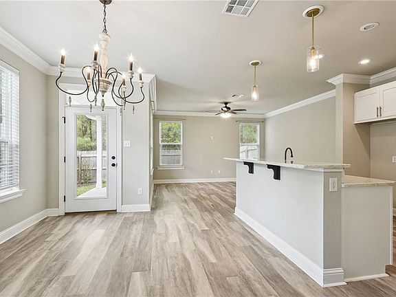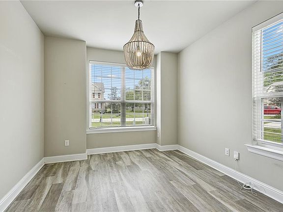 This immaculate townhome in The Village at Guste Island offers a like-new living experience. Boasting 3 bedrooms, 2.5 bathrooms, a spacious living room, and a separate den, this unit exudes comfort and functionality. Upgraded with custom granite counters, cabinets, stainless steel appliances, window blinds, framed bathroom mirrors, and modern lighting, every detail reflects quality and style. Enjoy the convenience of garage/utility room storage and the added benefits of gutters above the patio and a beautiful rear yard. Residents also have access to a community pool, play spaces, clubhouse, and more, fostering a vibrant community atmosphere. With excellent schools nearby and situated in Flood Zone X, this home offers both luxury and peace of mind.