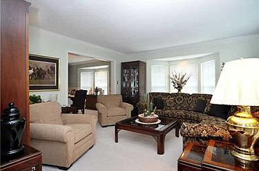 Location,Location,Location! EIK, cherry cabinets, center island, pantry, appliances stay, open to large family room w/gas fireplace. New carpeting throughout house. Bay windows in formal dining room & living room. Large Master w/sitting room, walk in closet, master bath w/jet tub and newly remodeled shower. Recess lighting thru out, large closets, 1st fl laundry, water filtration system, large cement drive way, double insulation, 17x14 deck overlooking private wooded yard. Plenty of room to enlarge back yard. Remodeled front door entryway. Landscaped w/sprinkler system.